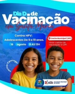 A Prefeitura de Santa Maria, por meio da Secretaria Municipal de Saúde, convida crianças, adolescentes e jovens de 9 a ...